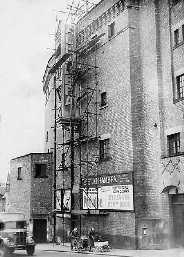 Location: 101 Queensferry Road Rosyth (now a public bar) Architect: JD Swanston Opened: 31st December 1921 by Provost Norval Seats: 900 Manager (1922): Capt J Brown Robertson “Talkies” were introduced to Rosyth in August 1929 at the Palace with the screening of 'Weary River', a few weeks before Dunfermline at the Palace Kinema on 16th September 1929. Permanent installation was completed on November. Damaged by fire: November 1929 - The whole Proscenium was destroyed. Reopened January 1939 with 'The Singing Fool'. Cinemascope: introduced for 'The Robe' January 1955 Sound: Western Electric Sound Reproduction equipment Managers: April 1944 Mr Wright in place of Mr Moore / July 1957 Mr J Hansell Bell / 1965–1968 Mr William WM Gourlay / 1968-1971 Mr Brian Stobie Bingo offered: Two nights a week from around 1967 Cinema operation ceased: April 1971 Closed: 5th June 1971 Used as a lounge bar / dining room / public house since 1979 The Alhambra Theatre (Picture House) (1922)